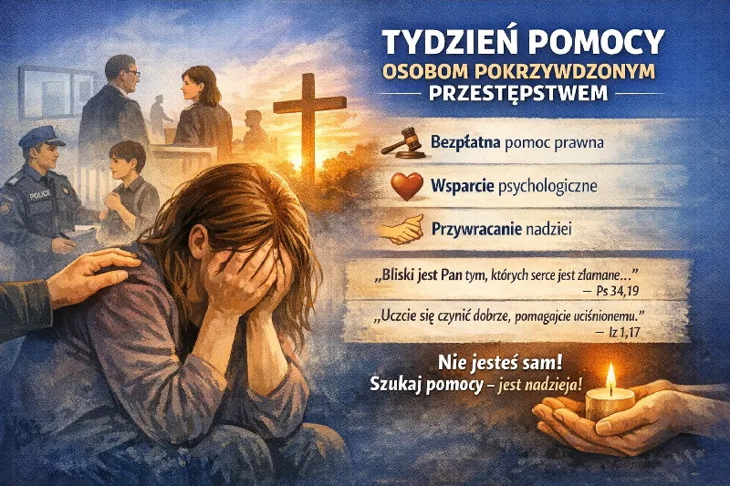Tydzień Pomocy Osobom Pokrzywdzonym Przestępstwem (16-22 II) to ogólnopolska inicjatywa, która każdego roku w lutym przypomina o potrzebie solidarności z osobami dotkniętymi przemocą, niesprawiedliwością i przestępstwem. Jej celem jest nie tylko udzielenie konkretnej pomocy prawnej i psychologicznej, ale także przywrócenie poczucia godności, bezpieczeństwa i nadziei tym, którzy często zostali pozostawieni sami ze swoim cierpieniem.